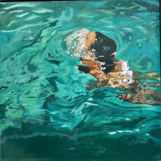 In der realistischen Darstellung geht es mir um den Moment, den Augenblick dieses Zustands, den ich zunächst skizziere, ehe ich die Zeichnung im Atelier auf der Leinwand als Gemälde umsetzte . Dabei arbeite ich meist mit Pigmenten in Mohnöl oder auch in Acrylbinder.