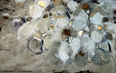 Großformatige Gemälde, abstrakt gearbeitet in Pigmenten in Acrylbinder auf Leinwand.