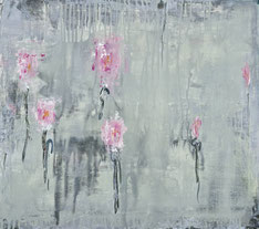 Semiabstrakte Werke im Großformat mit floralem Halbmotiv. Meist sind es Rosen, die im Sommer ihr Dasein feiern und mich zu dieser Werkserie inspirierten.