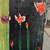 Yo ist auch eine große Blumenfreundin und Gartenkünstlerin. So ist es nicht verwunderlich, dass sie ihre Blumen und den Garten immer wieder porträtiert. Mit kräftigem Pinselstrich und solidem Duktus malte Yo diese Irisblüten. Dabei verwendet Yo hervorragende lichtechte Pigmente, die sie in Mohnöl zur Farbe verarbeitet. Abstrakte Blattformen und eine lässig platzierte Linienführung in leuchtendem Pink, Rosa und Orange auf dem dunkelgrünen, fast schwarzen Blattwerk, das zugleich Hintergrund ist. Die Iris mit ihrem interessanten, bizarren und zuweilen erotischen Blüten gehört zu den floralen Lieblingsmodellen der Künstlerin.